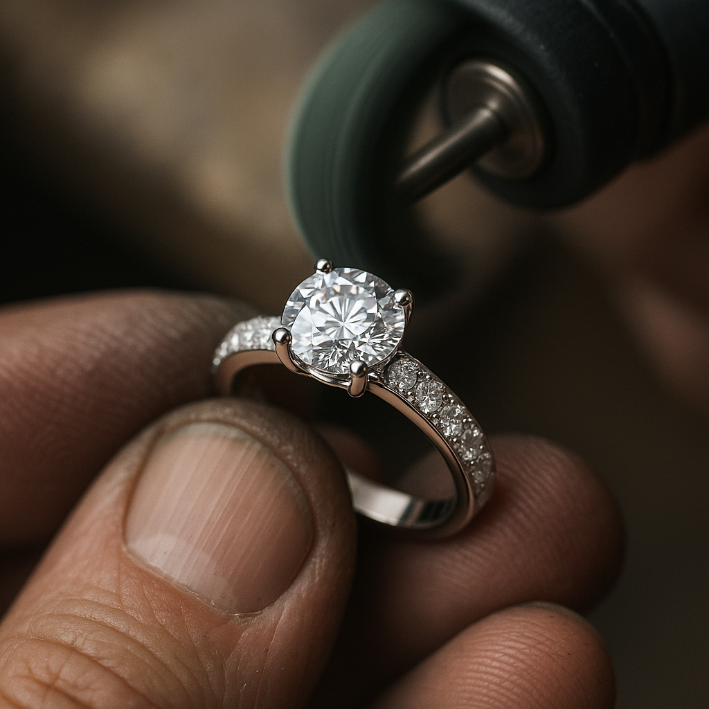 In the final step, your jewelry is carefully polished to achieve a brilliant finish. Our experts ensure every surface gleams with perfection, enhancing the metal’s shine and highlighting the intricate details of your design for a stunning, ready-to-wear piece.
